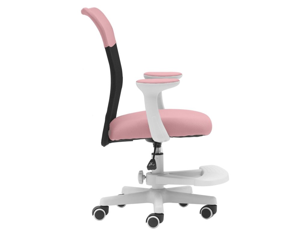 Dětská židle s pohodlnou podnožkou a barevným designem v barvě světle růžové